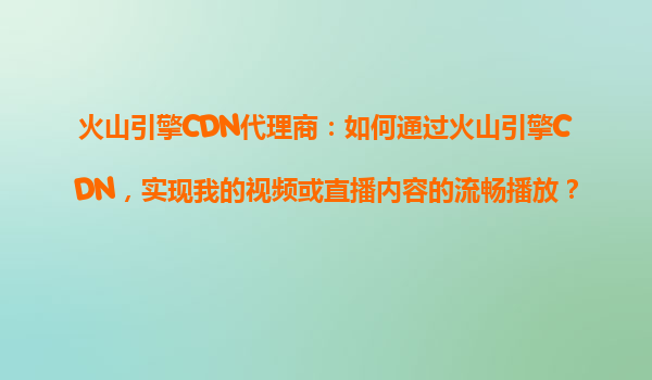 火山引擎cdn代理商:如何通过火山引擎CDN,实现我的视频或直播内容的流畅播放?