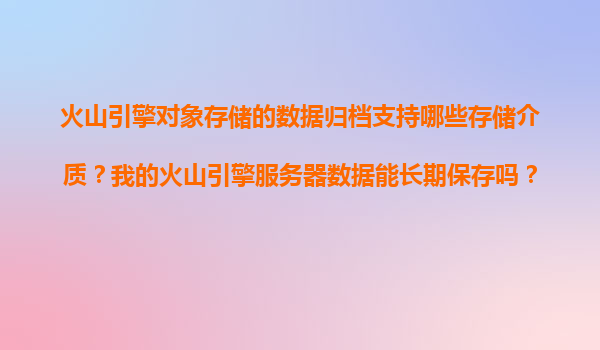 火山引擎对象存储的数据归档支持与长期保存方案解析