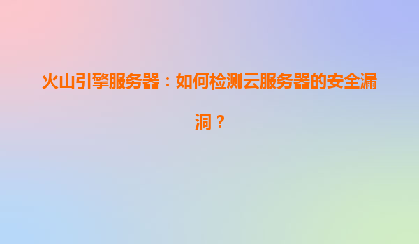 火山引擎服务器:如何检测云服务器的安全漏洞?