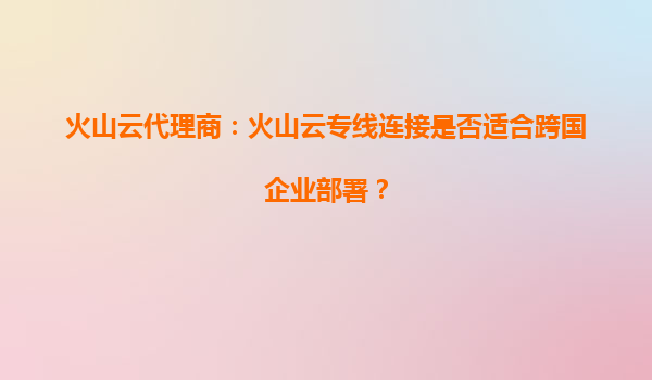 2025-09-21火山云代理商:火山云专线连接如何助力跨国企业高效部署? 一、跨国企业网络连接的痛点与需求 随着全球化业务扩张,跨国企业对网络连接的稳定性、安全性和延迟提出了更高要求。传统公网V...