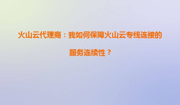 火山云代理商:如何保障火山云专线连接的服务连续性 一、专线连接服务连续性的核心挑战 在数字化转型浪潮下,企业对云专线的稳定性、低时延和高安全性需求日益增长。作为火山云代理商,...