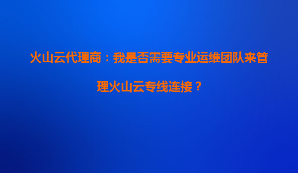 2025-09-21火山云代理商:我是否需要专业运维团队来管理火山云专线连接? 引言:专线连接的核心挑战与决策 随着企业数字化转型加速,稳定、低延迟的网络连接成为业务连续性的关键。火山云专线(DirectConne...