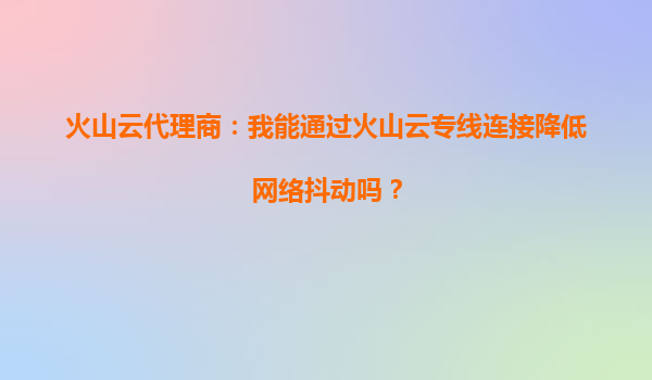 2025-09-21火山云专线如何助力企业降低网络抖动? 在当今数字化时代,稳定的网络连接对于企业的业务运营至关重要。网络抖动(延迟波动)可能导致视频会议卡顿、数据传输中断、实时交互滞后等问题,直接影响用户体验和业务效率...