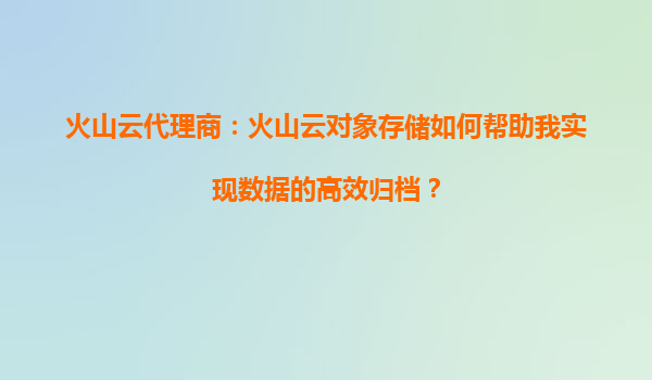 火山云代理商:火山云对象存储如何帮助我实现数据的高效归档? 一、火山云对象存储的核心优势 火山云对象存储(veStackObjectStorage)基于字节跳动多年大规模数据管理经验,具备以下核心能力:...