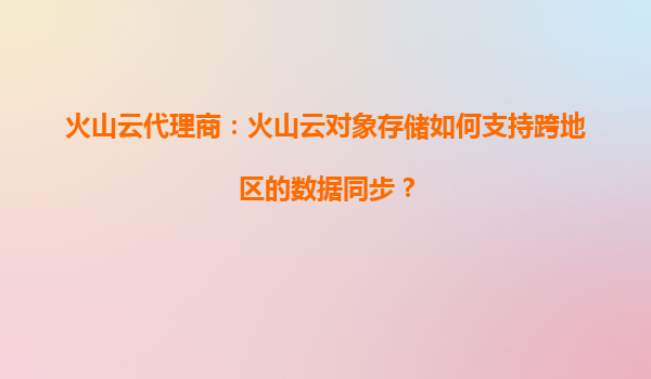 2025-09-16火山云代理商:火山云对象存储如何支持跨地区的数据同步? 在当今数字化时代,数据的高效管理和全局同步能力已成为企业业务拓展的重要支撑。火山引擎旗下的火山云对象存储(VolcanoEngineObjectStorage,简...