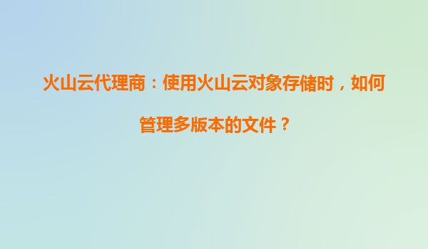 2025-09-16火山云代理商:使用火山云对象存储时,如何管理多版本的文件? 一、火山云对象存储的多版本管理功能 火山云对象存储(TOS)提供了强大的多版本文件管理功能,允许用户在同一存储桶中保存同一...