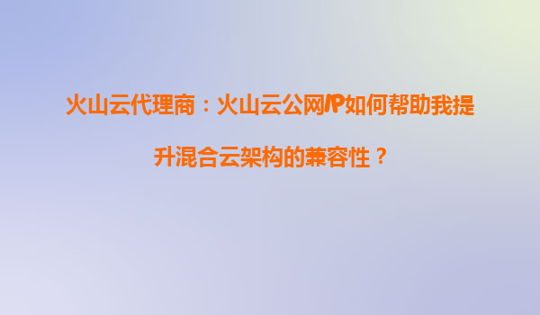 2025-09-16火山云代理商:使用火山云公网IP如何提升我数据中心的负载能力? 一、火山云公网IP的核心价值与优势解析 火山引擎提供的公网IP服务,是数据中心扩展负载能力的关键基础设施。其核心优势包括: 弹性扩...