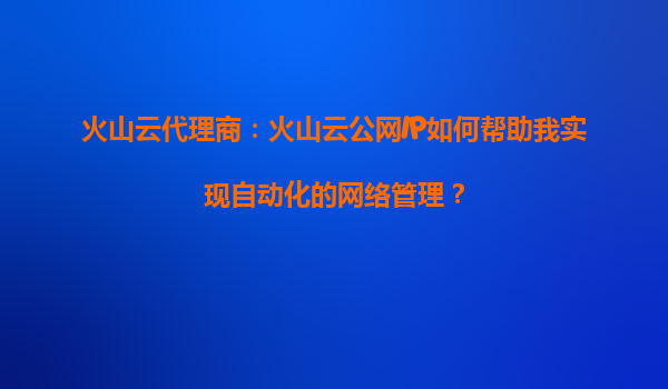 2025-09-16火山云代理商:火山云公网IP如何帮助我实现自动化的网络管理? 引言:自动化网络管理的需求 随着企业数字化转型的加速,网络管理的复杂性日益增加。传统的人工配置和管理方式不仅效率低...