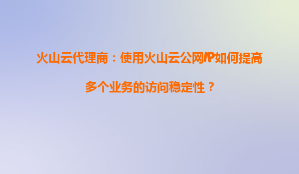 2025-09-16火山云代理商:使用火山云公网IP如何提高多个业务的访问稳定性? 一、引言 在当今数字化时代,企业对网络稳定性和高性能访问的需求越来越高。尤其是对于同时运行多个业务的企业来说,如何确保各业务系统的...