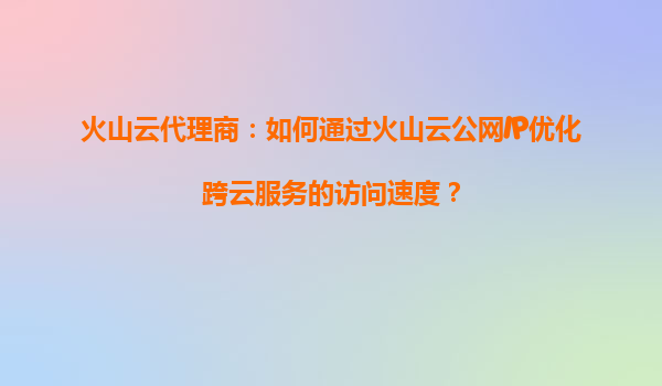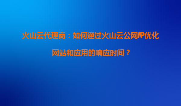 2025-09-16火山云代理商:如何通过火山云公网IP优化网站和应用的响应时间? 引言:响应速度是关键竞争力 在数字化时代,网站和应用的响应时间直接影响用户体验、转化率甚至搜索引...