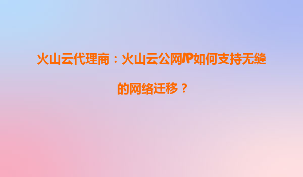 2025-09-16火山云代理商:火山云公网IP如何支持无缝的网络迁移? 引言 在数字化时代,企业对于网络的稳定性和灵活性要求越来越高,尤其是在业务扩展或架构调整时,如何实现无缝的网络迁移成为关键挑战之...
