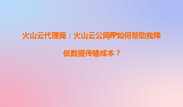 2025-09-16火山云代理商:火山云公网IP如何帮助我降低数据传输成本? 一、数据时代的新挑战:高昂的传输成本 随着数字化转型加速,企业数据交互量呈现指数级增长。传统的网络架构中,跨运营商、跨...