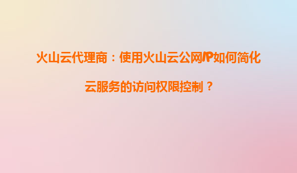 2025-09-16火山云代理商:使用火山云公网IP如何简化云服务的访问权限控制? 在云计算时代,企业越来越依赖云服务来支撑业务运营。然而,随着规模的扩大,云服务的访问权限管理也变得愈发复杂。火山引擎作为领先的云计算服务提...