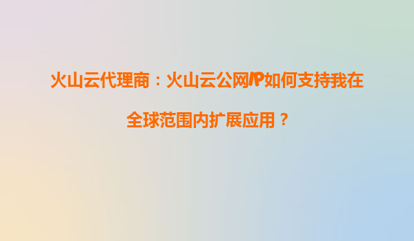 2025-09-16火山云代理商:火山云公网IP如何支持我在全球范围内扩展应用? 一、火山引擎公网IP的核心优势 火山引擎(VolcanoEngine)提供的公网IP服务具备以下差异化优势,为全球化业务拓展奠定基础: ...