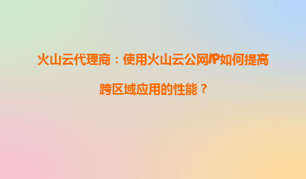 2025-09-16火山云代理商:使用火山云公网IP如何提高跨区域应用的性能? 一、火山引擎的核心优势解析 火山引擎作为字节跳动旗下的云计算服务平台,在跨区域网络优化方面具备三大核心优势: 全球骨干网络覆盖-...