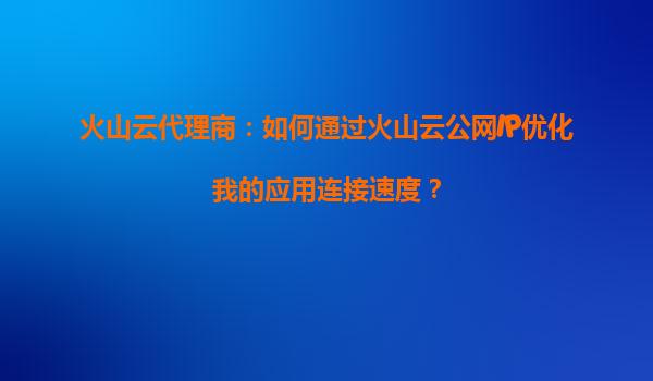 2025-09-16火山云代理商:如何通过火山云公网IP优化我的应用连接速度? 一、火山云公网IP的核心优势 火山引擎提供的公网IP服务具备以下差异化能力: 全球加速网络:基于覆盖30+国家地区的BGP...