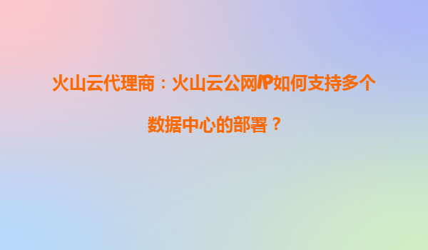 2025-09-16火山云代理商:火山云公网IP如何支持多个数据中心的部署? 引言 随着企业数字化转型的加速,跨地域、多云环境的业务部署需求日益增长。火山云(VolcanoEngine)作为字节跳动旗下的云计...