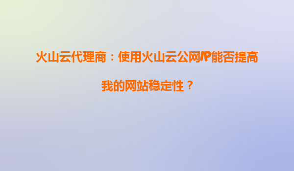 火山云代理商解读:使用火山云公网IP如何提升网站访问稳定性? 在数字化时代,网站的访问稳定性直接影响用户体验和业务转化率。作为企业基础设施的关键组成部分,公网IP的可靠性与性能至关重要。本文将详细解析火山...