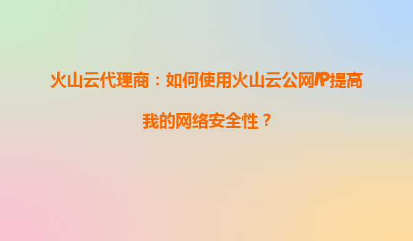 2025-09-16火山云代理商:如何使用火山云公网IP提高我的网络安全性? 一、火山云公网IP的核心优势 火山引擎提供的公网IP服务具备以下核心能力,可显著提升企业网络安全水...