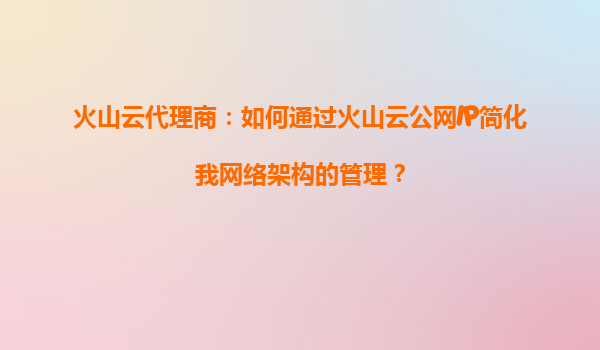 2025-09-16火山云代理商:如何通过火山云公网IP简化网络架构的管理 引言 在当今数字化时代,企业对网络架构的需求日益复杂。无论是电商平台的流量高峰,还是跨国企业的数据传输,都需要高效、稳定的网络支持。传统的网络架构...