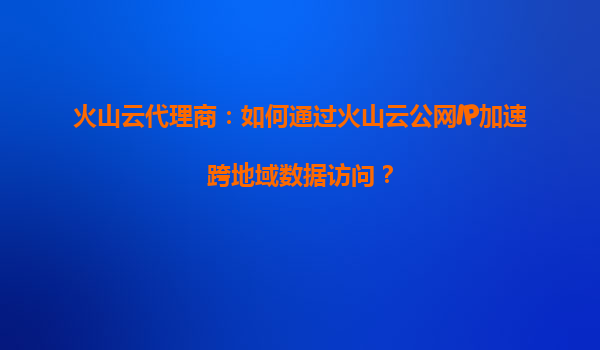 2025-09-16火山云代理商:如何通过火山云公网IP加速跨地域数据访问? 一、跨地域数据访问的挑战与需求 在数字化时代,企业对数据传输的速度和稳定性要求越来越高,尤其是跨地域的业务场景。例如,一家总部位...