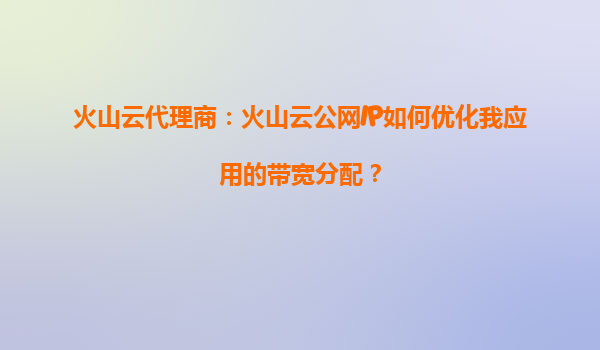 2025-09-16火山云代理商分享:火山云公网IP如何优化应用带宽分配 在数字化时代,带宽分配的合理性与效率直接影响着应用的性能和用户体验。借助火山云的强大技术与资源支持,企业可以轻松实现公网IP的带宽优化,确保应用稳定运...