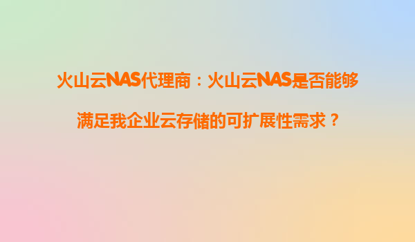 2025-09-16火山云NAS代理商:火山云NAS是否能够满足我企业云存储的可扩展性需求? 引言:企业云存储的可扩展性挑战 在当前数字化浪潮中,企业对云存储的需求日益增长,尤其是随着业务规模的扩大和数据...