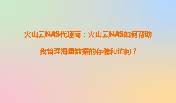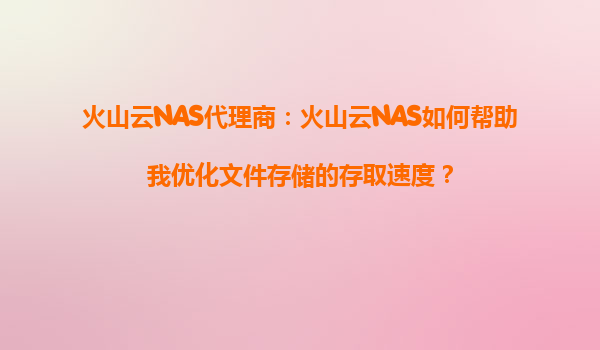 2025-09-16火山云NAS代理商:火山云NAS如何帮助我优化文件存储的存取速度? 一、引言 在当今数字化时代,文件存储和访问速度对于企业和个人用户来说至关重要。随着数据量的不断增长,传统的存储解决方案往往难以...