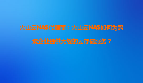 2025-09-16火山云NAS代理商:火山云NAS如何为跨境企业提供无缝的云存储服务? 一、跨境企业云存储的痛点与需求 随着全球化进程加速,跨境企业在数据存储与管理中面临多重挑战: 1.数据分...