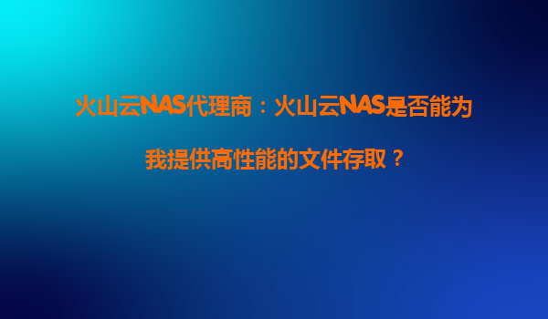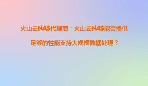 2025-09-05火山云NAS代理商视角:火山云NAS能否提供足够的性能支持大规模数据处理? 作为火山云NAS的代理商,我们经常被客户问到一个核心问题:火山云NAS能否提供足够的性能来支持大规模数据处理?答案是肯定的。火山...