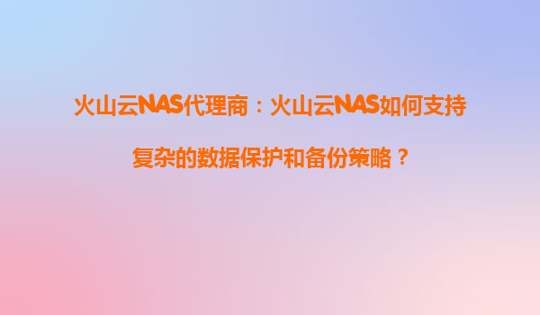火山云NAS代理商:火山云NAS如何支持复杂的数据保护和备份策略? 引言 在当今数字化时代,企业数据正以前所未有的速度增长,数据的安全性和可用性成为企业IT架构的核心关注点。作为一款高性能的存储解决方案...