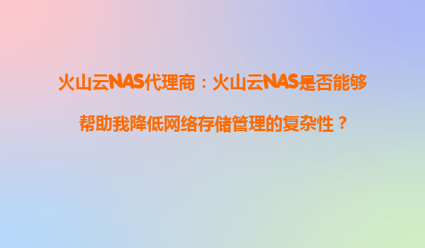 2025-09-05火山云NAS代理商解析:如何通过火山云NAS降低网络存储管理复杂度? 一、企业网络存储管理的核心痛点 在数字化转型浪潮中,企业数据量呈指数级增长,传统存储方式面临三大挑战: 1.扩容成本高-硬件采购周期长,维...