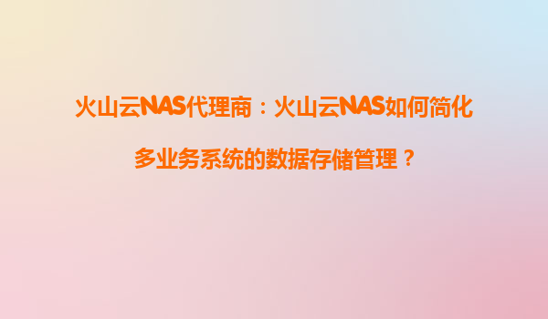 2025-09-04火山云NAS代理商:火山云NAS如何简化多业务系统的数据存储管理? 一、企业多业务系统数据管理的痛点 随着企业数字化转型的加速,业务系统逐渐多元化,数据存储面临诸多挑战: 数据孤岛问题:...