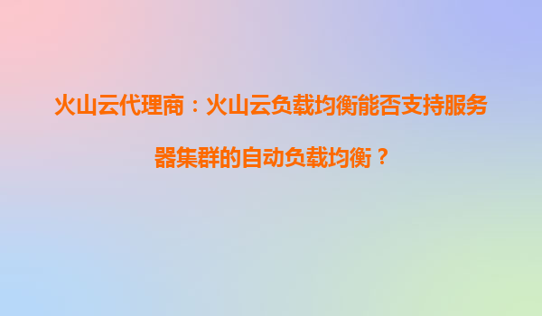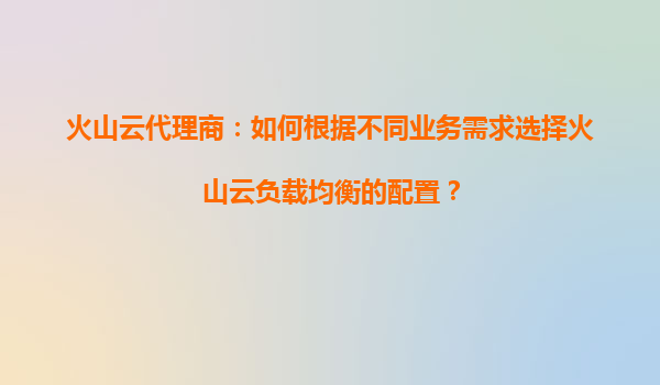 2025-09-03火山云代理商:如何根据不同业务需求选择火山云负载均衡的配置? 一、火山云负载均衡的核心优势 作为火山引擎(VolcanoEngine)的关键组件,火山云负载均衡(CloudLoadBalancer,CLB)凭借以下核心优势...