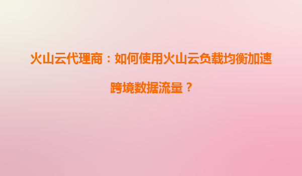 2025-09-03火山云代理商:如何使用火山云负载均衡加速跨境数据流量? 一、跨境数据加速的挑战与需求 随着全球数字化进程加快,跨境数据传输成为企业国际化运营的关键环节。然而,跨国网络环境下普遍存在以下痛...