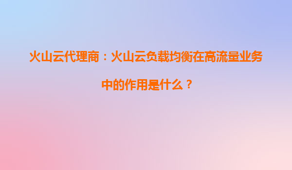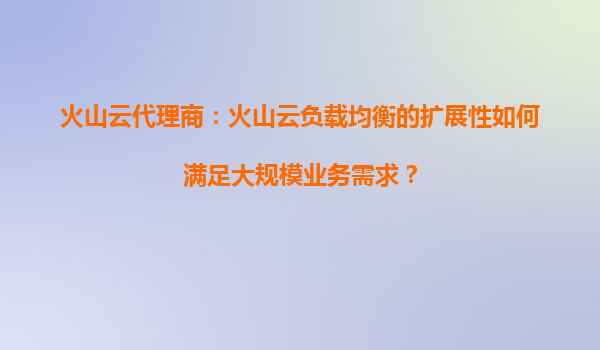 2025-09-03火山云代理商:火山云负载均衡的扩展性如何满足大规模业务需求? 一、大规模业务对负载均衡的核心需求 随着数字化进程加速,企业业务规模呈指数级增长,对云计算基础设施的要求也越来越...