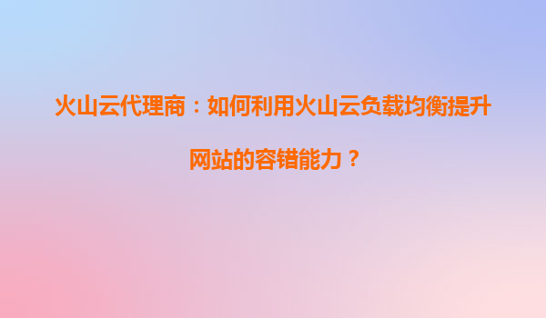 2025-09-03利用火山云负载均衡提升网站容错能力的关键策略 引言:容错能力在数字化时代的核心价值 在当今高并发的互联网环境中,网站服务的稳定性和可用性直接关系到用户体验与企业收益。火山云负载...