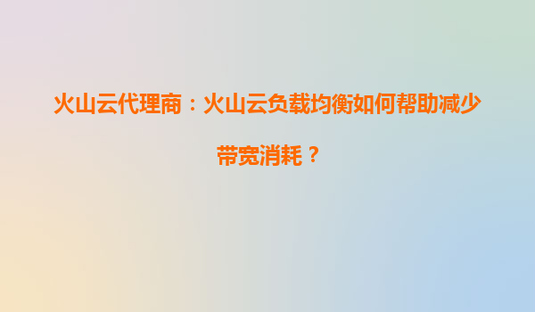 2025-09-02火山云代理商:火山云负载均衡如何帮助减少带宽消耗? 引言 在当今数字化时代,企业对云计算资源的需求日益增长,尤其是需要高性能、高可用性的网络服务。然而,随着业务量的增加,...