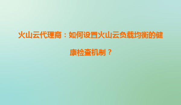 2025-09-03火山云代理商:如何设置火山云负载均衡的健康检查机制? 引言 随着企业上云的加速,负载均衡(LoadBalancer)成为保障业务高可用的核心组件之一。火山引擎作为字节跳动旗下的云计算...