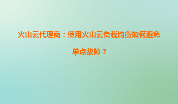 2025-09-02火山云代理商:使用火山云负载均衡如何避免单点故障? 一、什么是单点故障? 在IT架构中,单点故障(SinglePointofFailure,SPOF)指的是系统中的某个组件如果失效,会导致整个系统无法正常工作。对...