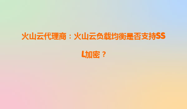 2025-09-02火山云代理商:火山云负载均衡是否支持SSL加密? 火山云负载均衡的核心能力 在当今数字化时代,企业对于云计算服务的需求日益增长,尤其是对高性能、高可用的网...