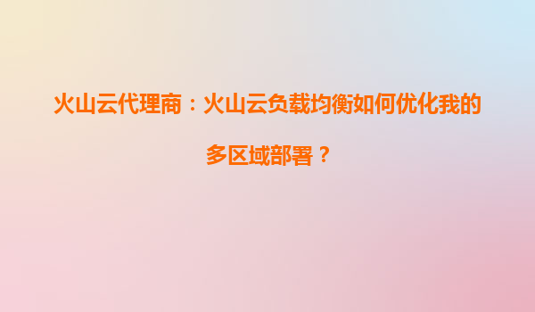 2025-09-02火山云负载均衡如何优化多区域部署 多区域部署的挑战与需求 在全球化业务场景中,多区域部署面临诸多挑战:用户访问延迟差异大、流量分布不均、跨区域容灾能力不足等。传统的单区域负载均衡难以满足业务需...