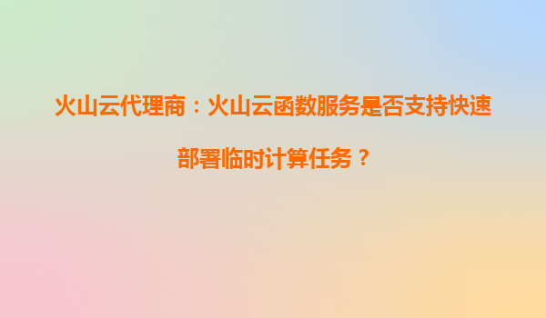 2025-08-30火山云代理商:我能通过火山云函数服务实现多业务系统联动吗? 一、火山云函数服务的核心能力 火山引擎的云函数(Serverless)服务是一种无服务器计算架构,允许开发者无需管理底层基础设施即可运...