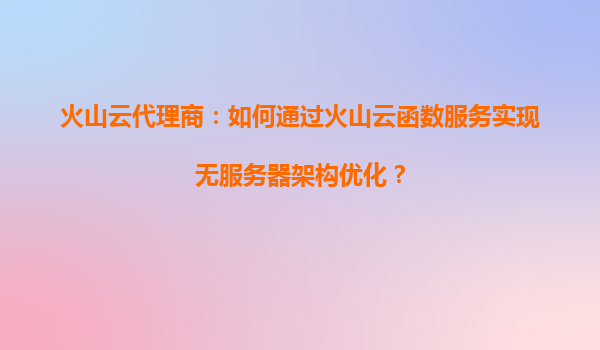 2025-08-30火山云代理商:如何通过火山云函数服务实现无服务器架构优化? 一、无服务器架构的核心价值与火山云优势 无服务器架构(Serverless)通过将基础设施管理交由云平台处理,使开发者能够专注于业务逻辑开发。...