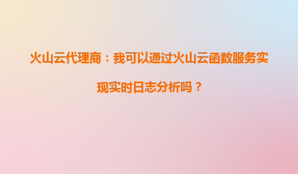 2025-08-30火山云代理商:如何通过火山云函数服务实现实时日志分析? 一、火山云函数服务的核心能力 火山引擎的云函数(Serverless)服务是一种无服务器计算架构,允许开发者无需管理服务器即...