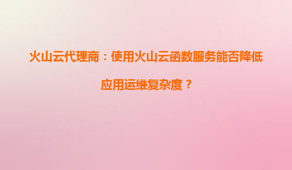 2025-08-30火山云代理商:使用火山云函数服务能否降低应用运维复杂度? 引言 在数字化转型的浪潮中,企业对于快速响应市场需求、降低运维成本的需求日益增长。传统的应用...