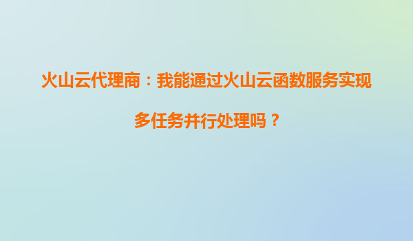 2025-08-30火山云代理商:如何通过火山云函数服务实现高效多任务并行处理? 一、火山云函数服务的核心能力 火山引擎的云函数(Serverless)服务为用户提供了无需管理服务器即可运行代码的能力,其...