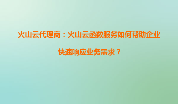 2025-08-30火山云代理商:火山云函数服务如何帮助企业快速响应业务需求? 引言:数字化转型中的敏捷需求 在当今快速变化的商业环境中,企业需要具备敏捷响应能力以应对突...