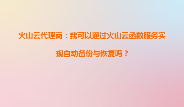 2025-08-30火山云函数服务:轻松实现自动备份与恢复的智能解决方案 一、火山云函数服务的核心能力 作为火山引擎提供的无服务器计算服务,火山云函数(Serverless)允许用...