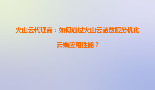 2025-08-30火山云代理商:如何通过火山云函数服务优化云端应用性能? 在当今快速发展的云计算时代,企业对于云端应用的性能和效率要求越来越高。火山引擎(VolcanoEngine)作为字节跳动旗下的云计算服务平台,提供了强大...